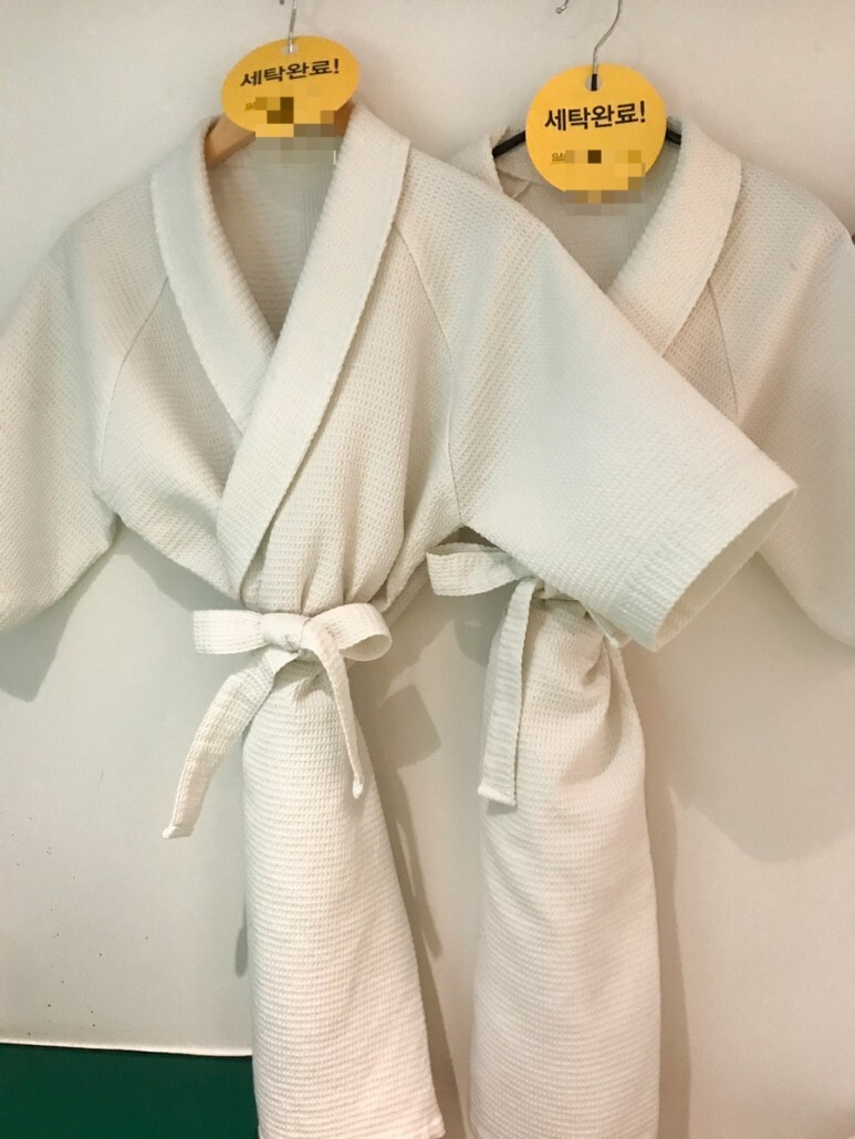 그리고 샤워가운에 걸려있는 세탁완료 스티커는 왠지 케어받는 기분을 들게했다. ෆ