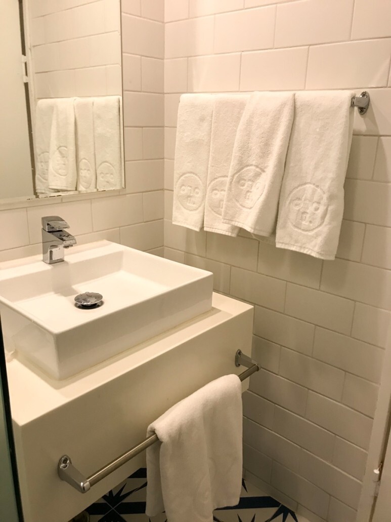 문이 안 쪽으로 열리는 구조인데, 문을 열면 그 뒤쪽에 세면대가 있어서 문을 꼭 닫아야 세면대를 이용할 수 있었다.