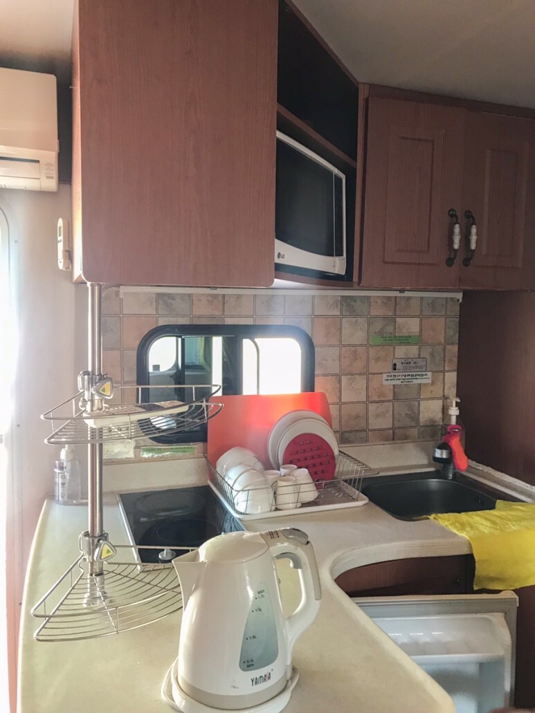 카라반 내부 구경을 끝내고 짐 정리까지 다 했다.