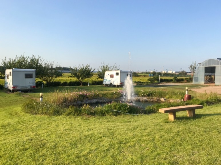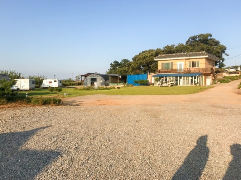 일요일이라 예약한 사람이 많이 없었는지 비어있는 카라반 중에서 마음에 드는 자리로 고르라고 해서 우리는 탁 트인 마당이 있는 카라반으로 선택했다.