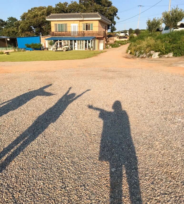 해가 지고 있어서 그림자 놀이도 해봤다.