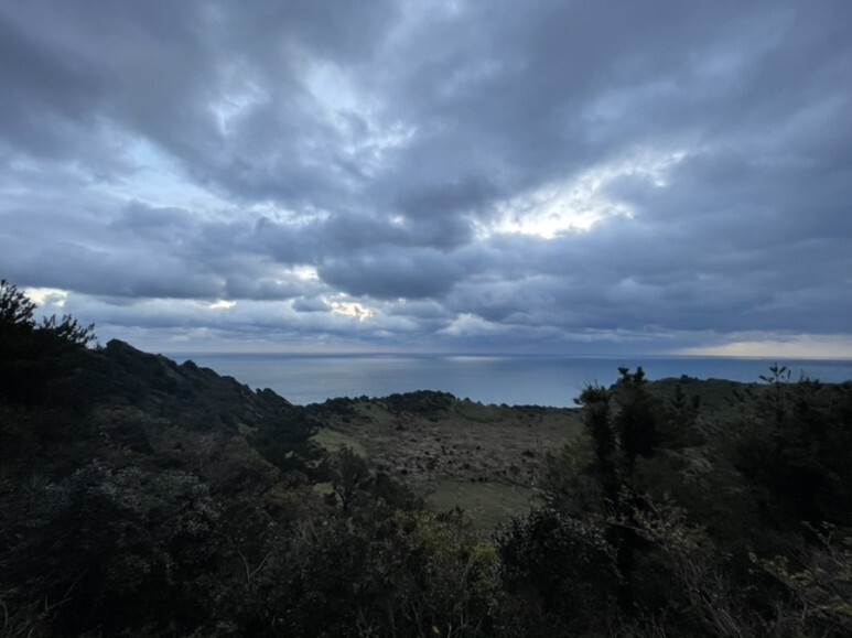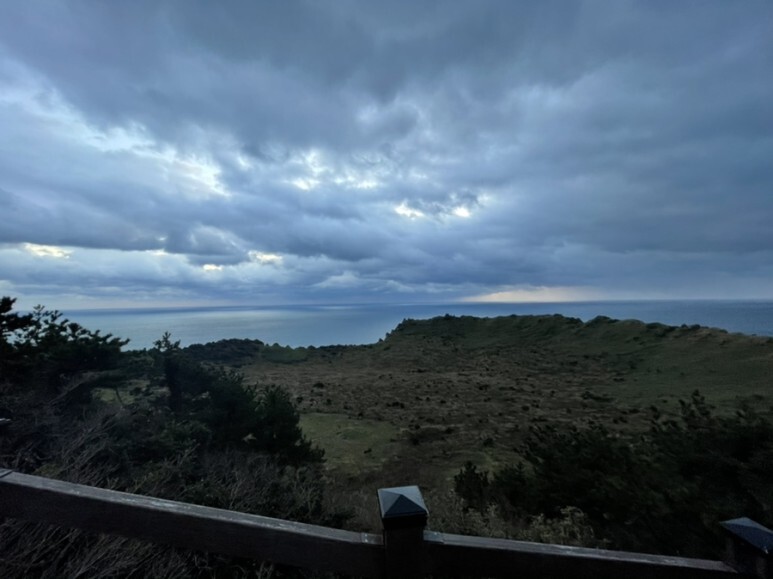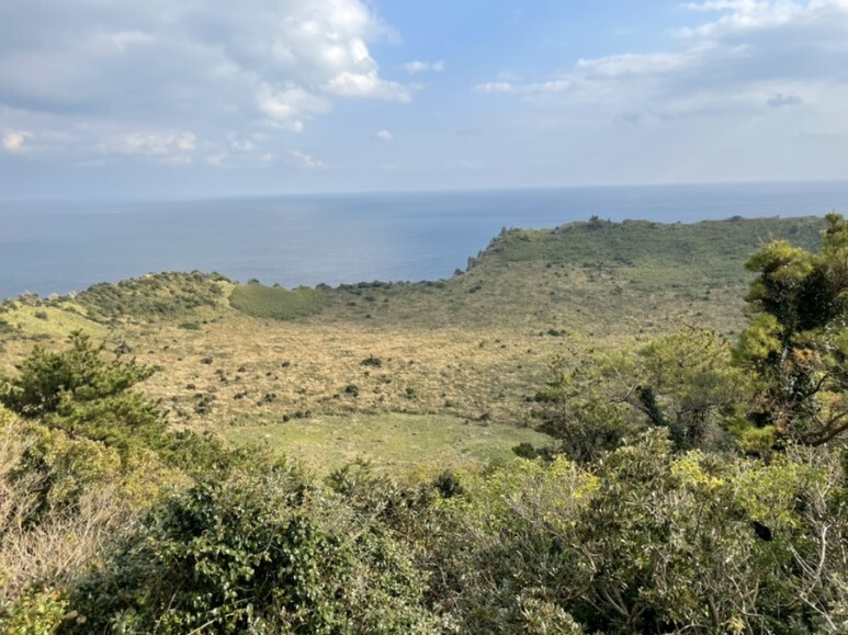 겨울에 본 분화구는 겨울 특유의 쓸쓸한 분위기를 풍겼지만 뒤쪽의 바다와 어울려 웅장한 느낌이 들었다.