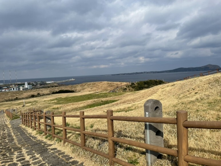 일단은 완만한 오르막길로 시작하는데 저 멀리 성산일출봉과 하늘, 구름의 조화가 정말 너무 예뻤다.