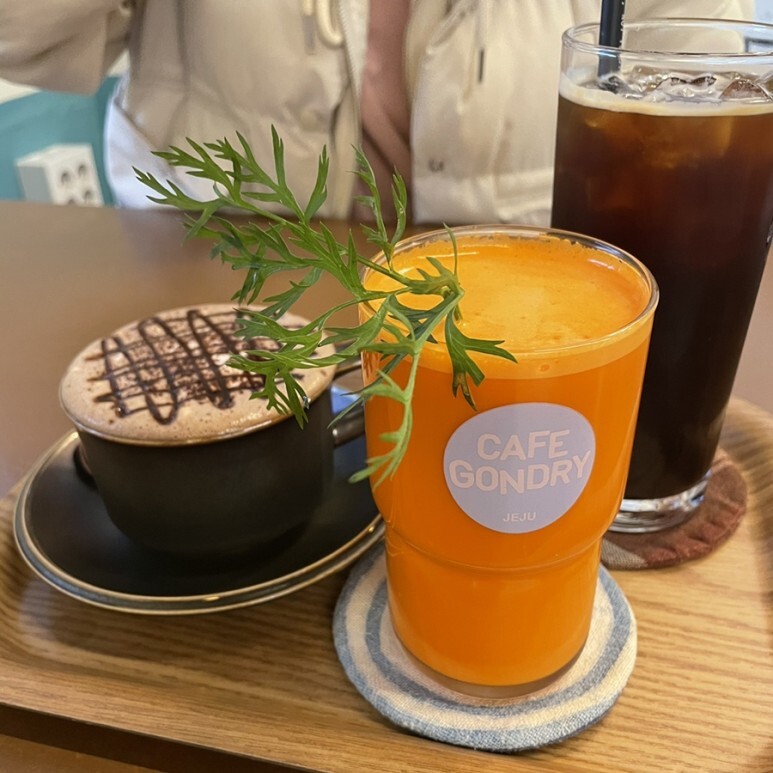 두 번째로 들린 날에 주문한 아이스 아메리카노, 핫초코, 당근주스!